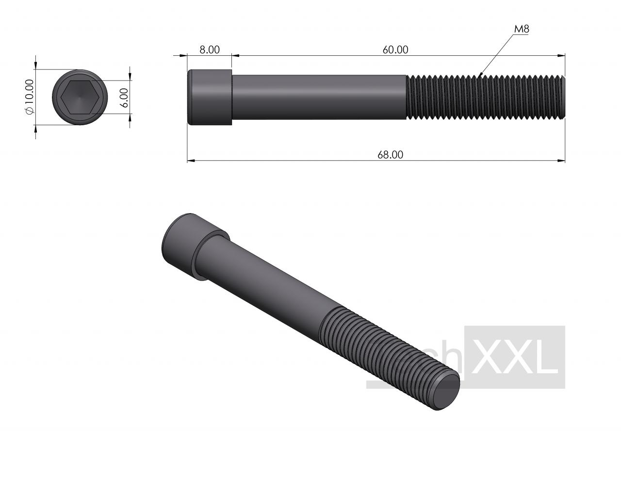 Cylindrical screw with hexagon socket DIN 912 M8x60 with special head 10mm stainless