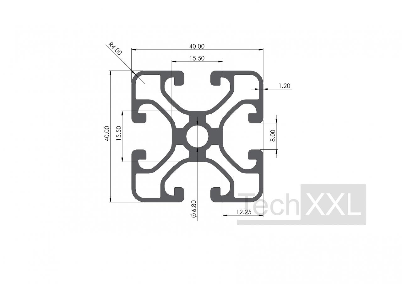 Aluminiumprofil in natur eloxierter Ausführung aus Europäischer Herstellung Verbaubar mit Zubehörteilen der Baureihe 8 im Raster 40 Bei hoher Belastung für Gewindeformverbinder nicht geeignet Toleranzen bei Zuschnitten nach DIN ISO 2768 Teil 1 m